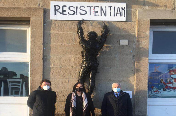 Si è conclusa con un successo la performance artistica di Marina Ioppolo, dal titolo Resistentiam. Un’opera ideata e realizzata per sensibilizzare il pubblico sull’attuale emergenza epidemiologica. Molto apprezzato il messaggio che l’artista viterbese ha voluto trasmettere. “Un invito a resistere a questa difficile prova – ha sottolineato il sindaco Giovanni Maria Arena, sul posto insieme a Marina Ioppolo e all’assessore Marco De Carolis -. Un’opera molto significativa, che racchiude un messaggio sociale, legato al delicato e difficile momento storico che stiamo vivendo”. “Per tutto il periodo festivo in molti hanno apprezzato l’installazione – ha aggiunto l’assessore alla cultura Marco De Carolis – volutamente posizionata dall’artista sulla facciata di un edificio del centro, accanto a un’attività commerciale. Un’iniziativa artistica che il Comune di Viterbo ha patrocinato e che, insieme agli altri eventi natalizi, in streaming per ovvie ragioni, ha raccontato e contraddistinto le festività da poco trascorse”.