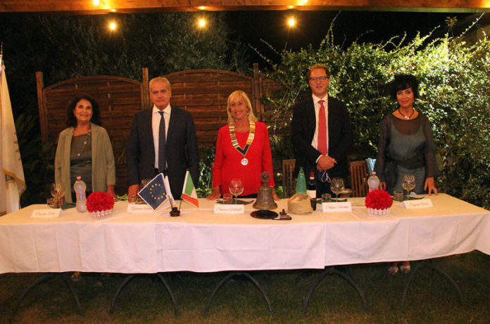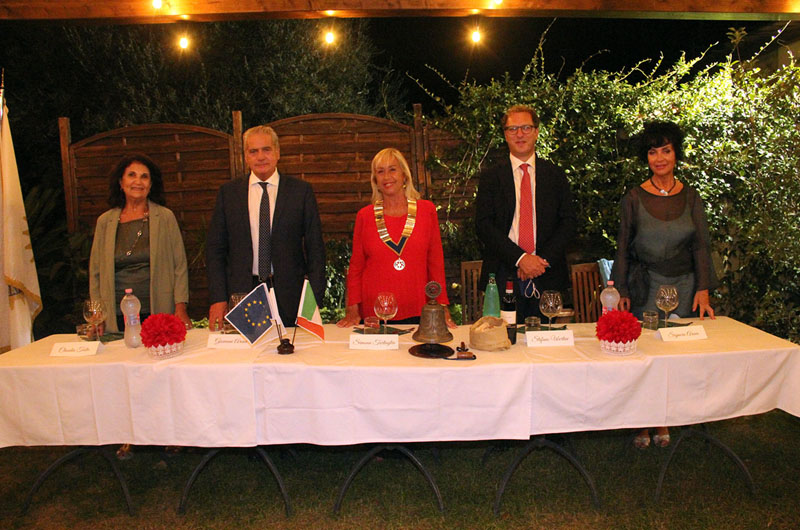 A testimonianza del forte legame con la città e le sue istituzioni erano presenti suor Francesca Pizzaia, superiora della Alcantarine che custodiscono il corpo di Rosa, insieme ad Eleonora Rava, per il Centro studi Santa Rosa, il magnifico rettore dell’Unitus, prof. Stefano Ubertini, ateneo che seguirà il restauro, e il sindaco Giovanni Maria Arena. Al tavolo di presidenza anche la president past, Claudia Testa, e la signora Arena.
