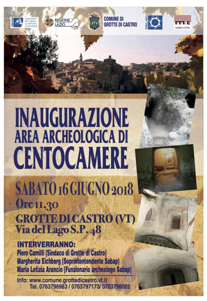 Sabato 16 giugno alle 11,30 in via del Lago s.p. 48, viene aperto al pubblico, dopo un lungo intervento di restauro e valorizzazione finanziato con fondi della regione Lazio e condotto dal comune di Grotte di Castro d’intesa con la soprintendenza archeologia, belle arti e paesaggio per l’area metropolitana di Roma, la provincia di Viterbo e l’Etruria meridionale, un ampio settore del sepolcreto di Casale – Centocamere, riferibile alla necropoli sud-occidentale dell’importante città etrusca che sorgeva sul colle della Civita e che costituì, tra il VII e il VI sec. a.C., il centro più rilevante nel territorio compreso tra il lago di Bolsena e la media valle del Fiora.
