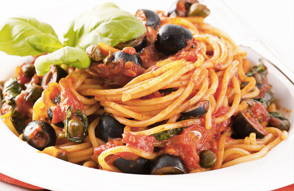 Ingredienti x 4 persone: 2 cipolle rosse di media grandezza, 1 scatola di tonno all’olio d’oliva di gr.160, gr.350-400 di linguine, 2 filetti di acciughe o un po’ di pasta, gr.50 di olive di Gaeta denocciolate, 1 cucchiaio di capperi, peperoncino, origano.