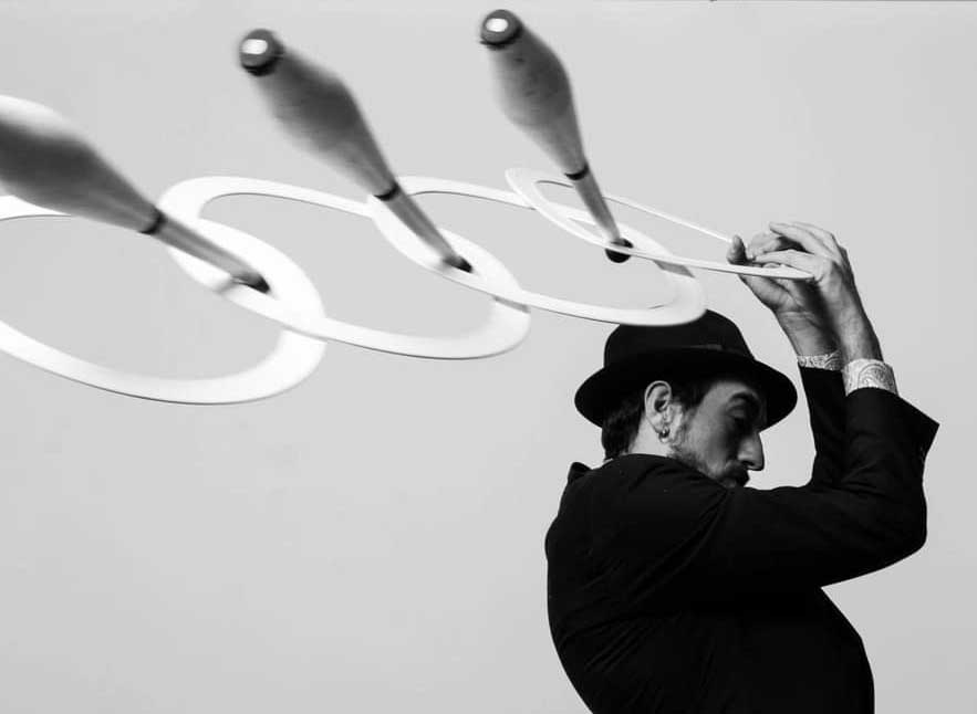 Colpi di Toss” di Alessio Paolelli in arte “Cinquepalle” è uno spettacolo di circo, in continua mutazione, che raccoglie principalmente la giocoleria classica, palloncini, tante gag, interazione con il pubblico ed un finale a tre metri di altezza su un instabile monociclo con tre torce infuocate. Il tutto a tema swing e rock and roll, adatto a tutte le età.