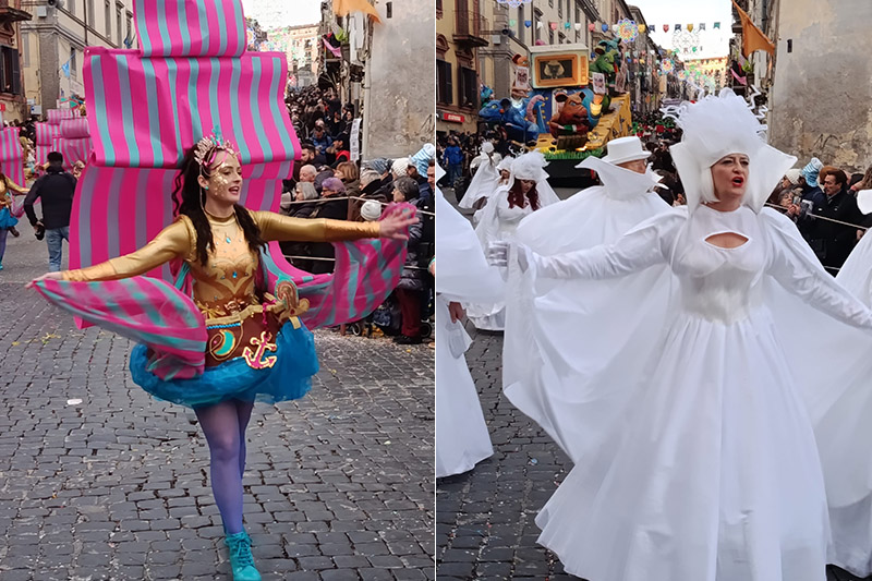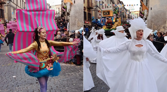 La prima giornata è andata avanti secondo il programma: il mattino l’apertura con il “Carnival street artist show” il Festival degli artisti di strada, seguita dall’apertura dello Street Food Festival. Nel pomeriggio, alle 15 tutti dentro la cinta dove si è tenuta la parata storica degli Ussari, seguita dal corso di gala con maschere, carri allegorici, gruppi mascherati e banda. Poi il gran finale in piazza Vittorio Emanuele II° a ballare il tradizionale Saltarello di Carnevale, accompagnati dalla mitica banda cittadina “A. Cantiani”.