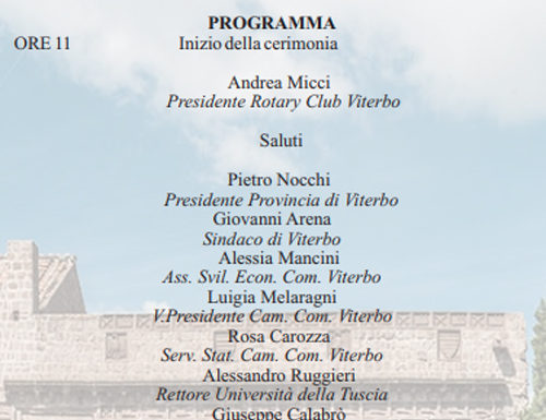 Il Rotary Club di Viterbo, promuove il premio dedicato alla “Viterbo che lavora”, con una cerimonia fissata per il 10 Maggio p.v. alle ore 11, presso la Scuola Marescialli dell’Aeronautica militare nell’Aeroporto T. Fabbri di Viterbo, per gentile concessione del Comandante Col. Leonardo Moroni, la premiazione di alcune Imprese start up, che si sono formate nella nostra Provincia.
