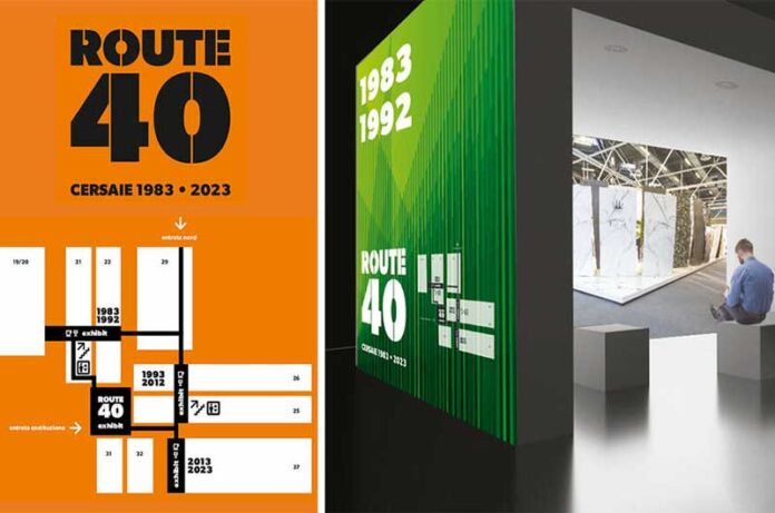 In occasione della 40ª edizione, lo spazio di Cersaie viene attraversato da un affascinante percorso espositivo che fa rivivere i 40 anni della propria evoluzione, focalizzandosi su design, tecnologia, prodotti e aziende che hanno fatto la storia. Route 40 permette al visitatore di percorrere i momenti caratterizzanti di questi quattro decenni sottolineando i grandi cambiamenti avvenuti in ambito culturale, sociale, progettuale e produttivo. Curato da Davide Vercelli e progettato da Dario Curatolo, Route 40 si snoderà nei percorsi di Cersaie a partire dal Quadriportico – punto di presentazione e di raccordo concettuale del racconto – per proseguire in Galleria 21-22, 25-26 e nel Mall del Padiglione 37 con allestimenti che raccontano ciascun decennio. Un percorso che non è esercizio nostalgico ma dimostrazione del ruolo chiave di Cersaie nel proporre prodotti d’avanguardia e indirizzare il mercato e la progettazione, diventando nei decenni piattaforma culturale in grado di informare e influenzare tutti gli operatori professionali.