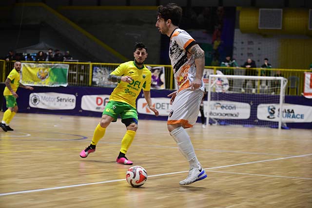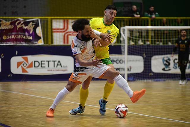 Nella ripresa i locali prendono coraggio e iniziano ad aumentare il ritmo del gioco, anche se gli ospiti tengono botta. Brunelli su un calcio di punizione colpisce la traversa a Thiago Perez battuto, mentre sul versante opposto è Lepadatu ad avere la palla del vantaggio: Fiuza esce a vuoto dalla sua area, Igor serve Lepadatu che però incredibilmente calcia fuori da ottima posizione. A poco più di cinque minuti dal termine del match e con il punteggio inchiodato sullo 0 a 0, mister Oliva decide di giocarsi la carta Stigliano come power play. Mossa azzeccata, perché pochi secondi dopo lo stesso Stigliano su assist di Brunelli insacca alle spalle dell’incolpevole Thiago Perez. Monsignori chiama time-out, giocandosi la carta prima Lamedica, poi Lepadatu come portiere di movimento, ma a parte il rosso (dalla panchina locale) all’indirizzo di Arcidiacone, i viterbesi non riescono a trovare il meritato pareggio, anzi a porta vuota rischiano addirittura di subire la seconda rete.