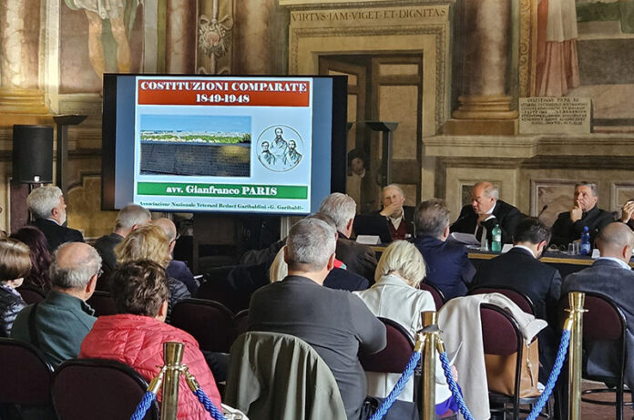 Sala Regia di Palazzo dei Priori a Viterbo venerdi 10 aprile piena in ogni ordine di posti per il convegno”Il Risorgimento nel Viterbese“. La kermesse si è svolta nel palazzo comunale della Città dei Papi in quella piazza del Plebiscito che prende il suo nome proprio da uno storico evento dell’età garibaldina: era il 20 settembre del 1860 quando con un plebiscito Viterbo si dichiarò indipendente dallo Stato Pontificio. Con una assoluta maggioranza, pochi contrari e un astenuto. Questo uno dei tanti risvolti e aneddoti spiegati nell’incontro organizzato da Archeotuscia ODV, Istituto per la storia del Risorgimento italiano, Associazione nazionale veterani e reduci garibaldini sezione Viterbo-Vetralla. Tra i promotori e presenti: Luciano Proietti, Felice Orlandini, Giulio Marini, Gaetano Petraglia, Gianfranco Paris e Antonio Quattranni. Tra il pubblico anche il procuratore capo di Viterbo e il prefetto nel giorno (10 aprile) in cui la polizia di Stato ha festeggiato i suoi 174 anni.