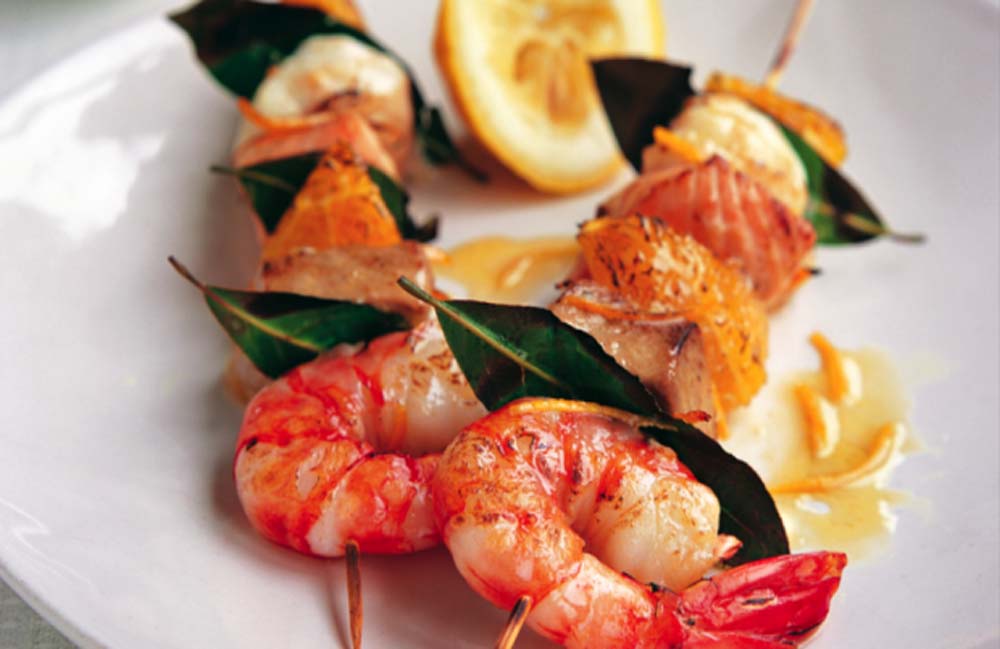 Cuocere gli spiedini su una griglia, circa 2 minuti a lato, tagliare i lime