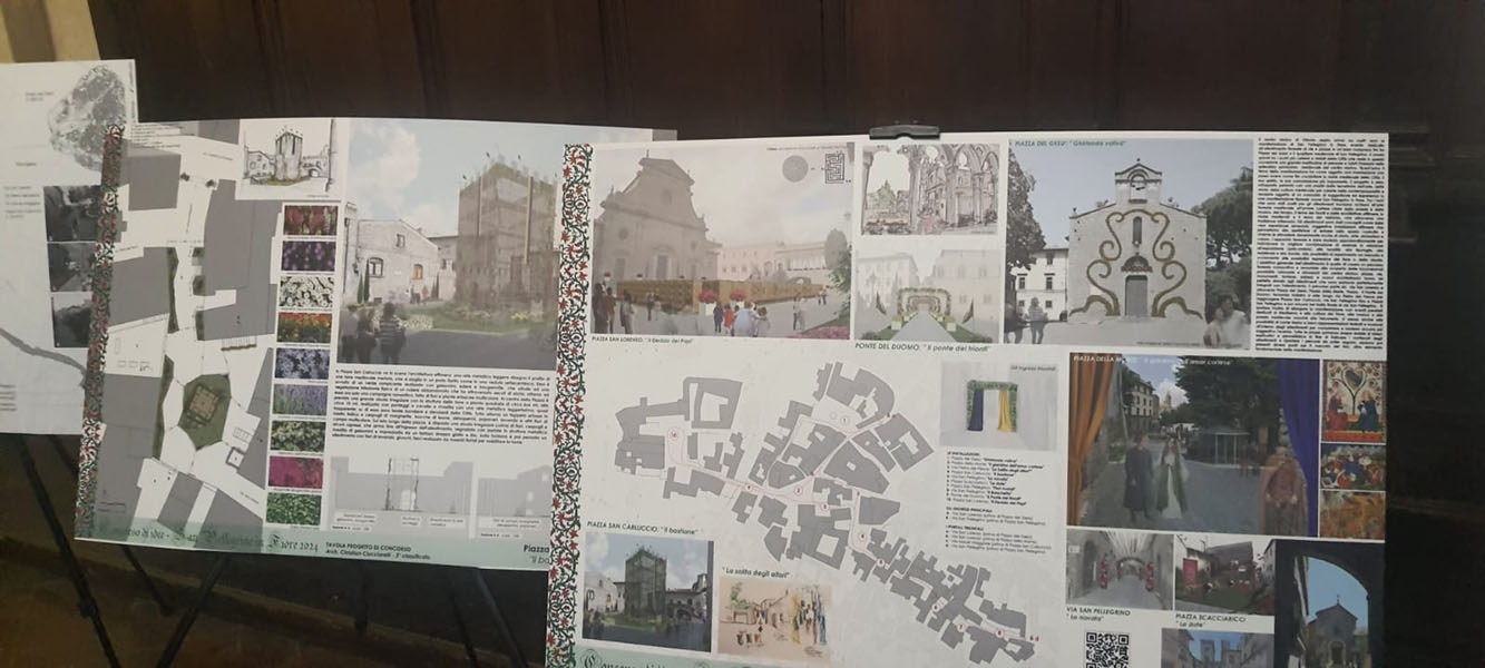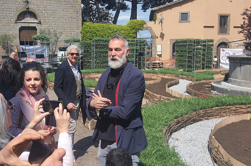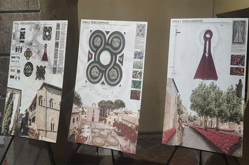 Anteprima di “San Pellegrino in Fiore” con il vincitore del progetto e patron, Raffaele Ascenzi, a fare gli onori di casa tra piazza del Gesù, piazza della Morte, le vie del quartiere medievale. Illustra con dovizia di particolari – anche florobotanici – il percorso alla sindaca, Chiara Frontini, accompagnata da assessori, consiglieri comunali, rappresentanti degli “sponsor” pubblici e privati. Nonché ai firmatari dei progetti classificatisi alle spalle di quello vincente di Ascenzi. Il centro storico è un “cantiere”, ovviamente, perché il festival aprirà ufficialmente soltanto mercoledì prossimo, primo maggio. Tra un’aiuola e l’altra, tra una piantina e l’altra, tra un ciuffo di finocchio e un becco d’aglio, tra una rosa e una camelia, il percorso comincia a disvelare le proprie bellezze, apprezzate anche da crocchi di turisti che sostano e poi sciamano nel centro della città. Anteprima soprattutto di verde, se non ancora di colori. Lo spettacolo autentico è riservato per la “cinque giorni” prevista dal calendario, che si protrarrà fino a domenica prossima. Comunque uno scenario verosimile di quel che sarà si può già gustare, fin dalla prima mattinata, nella Cappella Palatina di palazzo dei Priori dove sono esposti i vari progetti (dodici) presentati in concorso: da quello vittorioso di Raffaele Ascenzi a quelli che sono arrivati alle spalle. Per esempio, di Lorenzo Porciani (secondo) e di Christian Ciucciarelli (terzo). Gli autori sono presenti alla conferenza stampa che si tiene nella stessa cappella comunale. “E’ una mostra – spiega la prima cittadina che vuole dare una visione comunitaria all’evento”. Cioè, non si tratta di una iniziativa di quartiere, ma di un avvenimento che intende valorizzare Viterbo e la Tuscia intera. ”Rientra in un piano più ampio di costruzione della città sul quale hanno creduto anche gli ideatori dei progetti”, puntualizza. Concetto che viene condiviso anche dai rappresentanti che figurano tra gli sponsor del festival: Alvaro Marucci, pro rettore dell’Università della Tuscia, Luigi Pasqualetti presidente della Fondazione Carivit, Ermanno Nicolai per l’amministrazione provinciale. Poi parte la visita guidata. Anteprima di un cinque giorni di festa di colori.