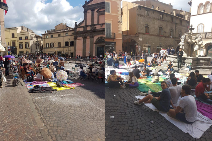 Sarebbe esercizio inutile eccedere nella descrizione della Viterbo pre-trasporto. Più facile invitare ad immaginare una piazza del Campo a Siena prima del Palio o una piazza Grande ad Arezzo prima della Giostra del Saracino. Viterbo ha offerto lo scenario opposto. Un biglietto da visita non esaltante per chi, ancora una volta, ha “invaso” pacificamente la città per scoprire la magia della Macchina, ma pure per tentare di intercettare pezzi di un patrimonio storico e artistico di assoluto prestigio. In molti punti strategici del centro ha scoperto invece scampoli di cromatico disordine. Non che sia un fenomeno esploso improvvisamente alla vigilia dell’ultimo passaggio di Gloria: è sbocciato – si fa per dire – negli anni ed è andato, via via, confermando un trend negativo per quanto devastante per l’immagine cittadina. Un parametro di cui l’Unesco terrà inevitabilmente conto. Eppure i recenti provvedimenti adottati dalla neonata Giunta comunale avevano fatto sperare in una inversione di tendenza: piazze liberate, fontane protette contro gli scalatori di circostanza, un senso di ritrovato ordine. Un flop o quasi. Che è civico prima ancora che politico. Se poi c’è anche chi, pur sedendo stabilmente nella casa comunale, ha pensato di bagnarsi i piedi in una pubblica fontana, be’ che c’è di male a stendere sul selciato un accappatoio e asciugarsi le estremità?