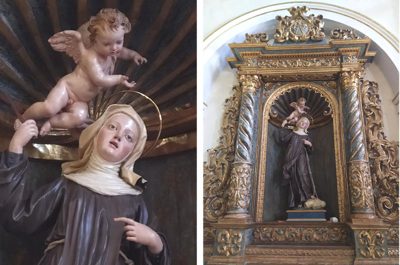 Incuriositi dal fatto che la nostra Santa patrona sia venerata anche a quasi cinquecento chilometri di distanza dalla sua città, giungiamo direttamente sul posto e parliamo con Marianna Spina – già ministra dell’ordine francescano secolare e nostra guida nella visita alla chiesa – che ci accompagna di fronte alla nicchia contenente la statua.