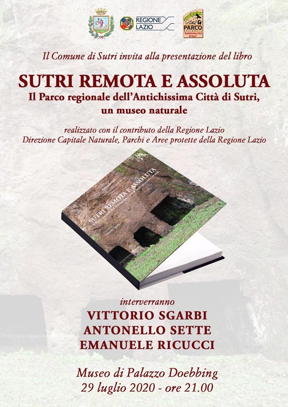 Mercoledì 29 luglio, nei giardini del museo di palazzo Doebbing, alle 21, il prossimo appuntamento con la presentazione del libro “Sutri remota e assoluta”, realizzato con il contributo essenziale della direzione Capitale naturale, parchi e aree protette della regione Lazio, con gli interventi del sindaco di Sutri, Vittorio Sgarbi e degli autori Antonello Sette ed Emanuele Ricucci.