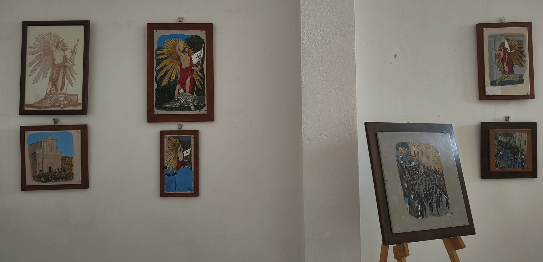 La pittrice Barbara Mellace ha esposto una singolare serie di opere con soggetti dedicati alla Pasqua di Tarquinia utilizzando le tecniche della pittura su ceramica cotta al forno e della matita sanguigna.