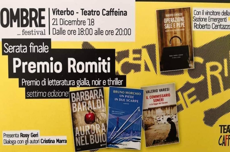Questi i romanzi finalisti della settima edizione: Barbara Baraldi con “Aurora nel buio” (Giunti), Bruno Morchio con “Un piede in due scarpe” (Rizzoli), Valerio Varesi con “Il commissario Soneri e la legge del Corano” (Frassinelli). Roberto Centazzo, invece, è il vincitore del Premio Romiti Sezione Emergenti con il romanzo “Operazione sale e pepe” (Tea).