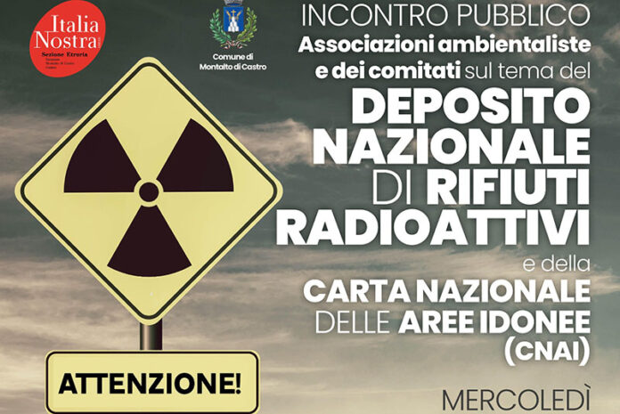 Scorie nucleari nella Tuscia, a Montalto di Castro incontro promosso da Italia Nostra OnlusSezione Etruria contro l’ipotesi di un Deposito nazionale di rifiuti radioattivi