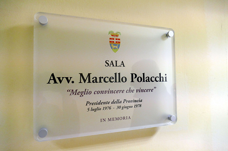 “Meglio convincere che vincere” recita la targa affissa in memoria dell’avv. Polacchi: un motto storico dell’ex Presidente della Provincia, che si è sempre distinto per la passione e la dedizione nell’attività amministrativa e politica. In Provincia è stato consigliere per più mandati, capogruppo del PCI e poi Presidente della Provincia dal 1976 al 1978. Grande uomo di cultura, con particolare interesse per la crescita culturale dei giovani, sarà ricordato anche per la forte spinta che ha dato alla realizzazione di importanti progetti culturali.
