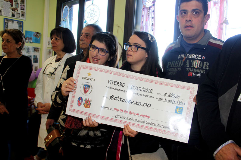 Un  gesto molto gradito da Eta Beta Onlus, come sottolinea il presidente Di Bella a nome di tutti i soci e dei ragazzi: “Grazie davvero e la nostra massima riconoscenza agli allievi del 19° corso, con il supporto del 20°, della Scuola sottufficiali Esercito, che in questo modo rendono ancora più preziosa la StraViterbo. La cifra donata sarà utilizzata nell’avvio dell’importante progetto di musicoterapia che stiamo organizzando insieme a ottimi professionisti per i nostri ragazzi speciali, che potranno averne un grande beneficio e, siamo certi, sapranno stupire per la loro bravura”.