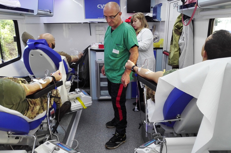 Presente il personale medico e paramedico specializzato, con l’autoemoteca, dell’ASL di Viterbo, nonché i volontari dell’AVIS di Viterbo, è stato possibile realizzare, grazie alla disponibilità del Servizio Sanitario dell’Istituto di formazione militare, la raccolta.
