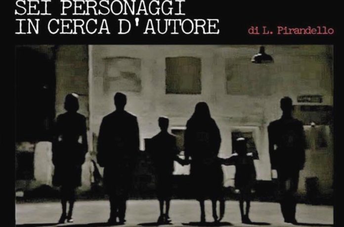 La scena si era aperta su un palcoscenico ancora in fase di allestimento, su cui un gruppo di attori stava cercando di interpretare l’opera pirandelliana “Il giuoco delle parti”, discutendone la partitura con il capocomico, impegnato a destreggiarsi tra il testo autoriale e l’egocentrismo degli interpreti. Tra lo sconcerto dei presenti, erano apparse d’improvviso sei figure, sconosciute alla compagnia, che, presa alla sprovvista, aveva mostrato fin dai primi istanti segni di irritazione. I sei vengono invitati a presentarsi e si dichiarano essere dei personaggi, partoriti dalla mente di un autore, che rifiutando di portare a termine il loro dramma, aveva optato infine per abbandonarli,
