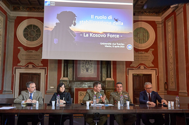 Protagonista dell’appuntamento odierno è stato il Generale di Corpo d’Armata Franco Federici, Consigliere Militare del Presidente del Consiglio dei Ministri. L’autorevole relatore, già Comandante delle Forze Militari NATO in Kosovo, dopo l’accoglienza da parte della Direttrice del Dipartimento di Economia, Ingegneria, Società, Impresa, Tiziana Laureti, ed una presentazione da parte del Generale Di Stasio, ha illustrato il “Ruolo di stabilizzazione della NATO in Kosovo”.