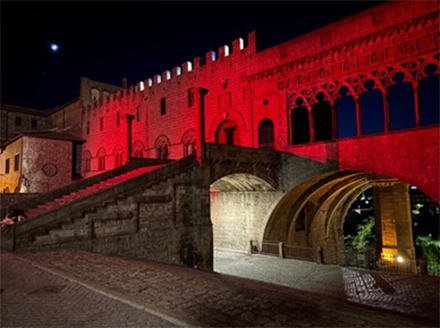 Sempre in occasione della Giornata Mondiale della sclerosi multipla, svolta contemporaneamente in 70 paesi di tutto il mondo si sono illuminati di rosso i principali monumenti italiani e fra questi non ha fatto mancare la sua presenza il Palazzo Papale, per la cui illuminazione si ringrazia il Comune di Viterbo.