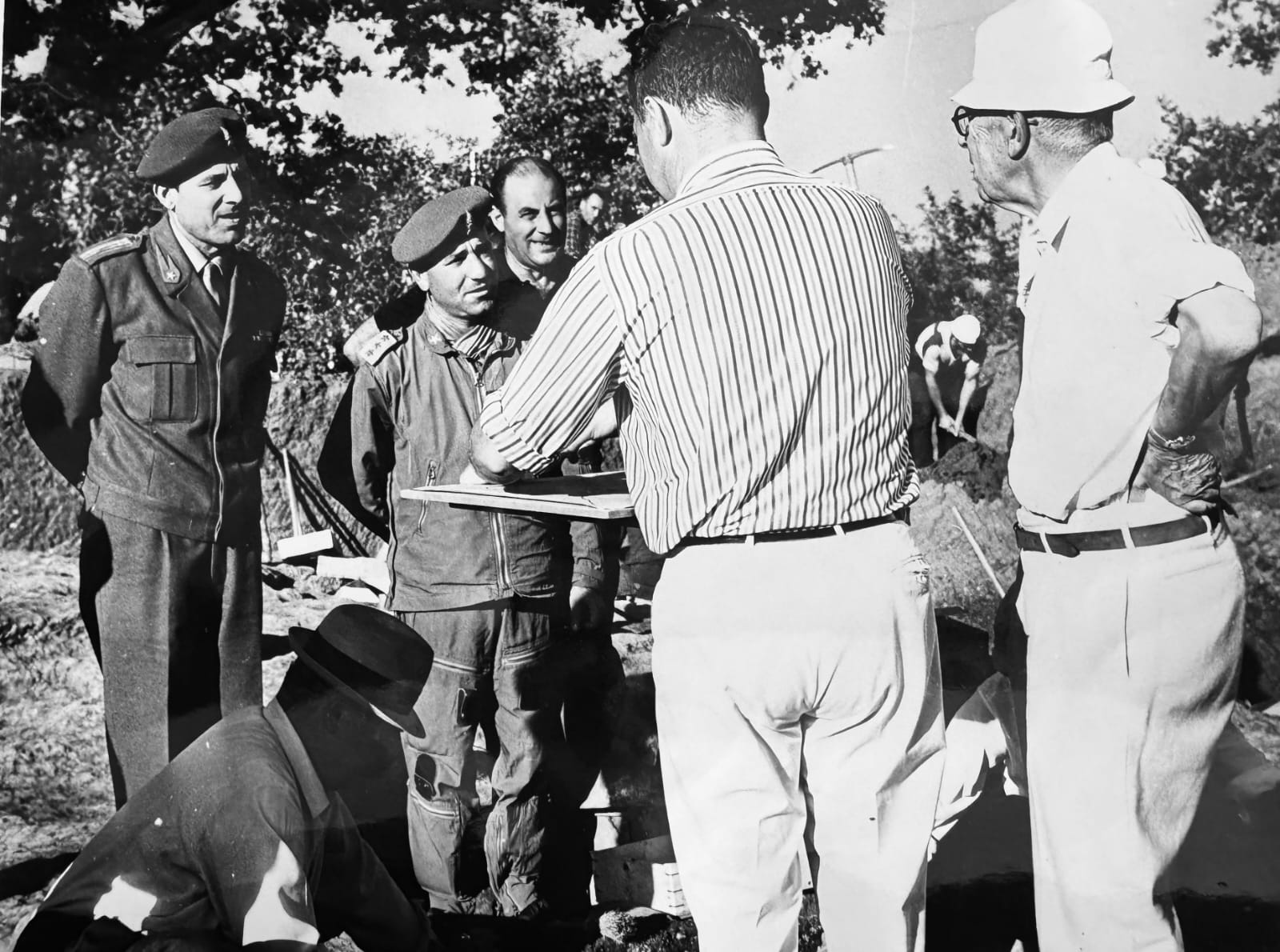 Il Colonnello Cervo, all’epoca Capitano, secondo in piedi da sx, con Re Gustavo Adolfo VI di Svezia (prima figura a dx) durante la campagne di scavo archeologico in località Acqua Rossa