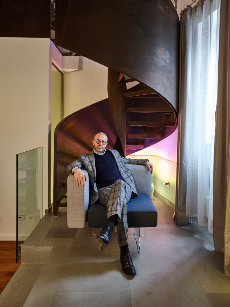 L’estro di Claudia ha concepito le atmosfere delle tre suite, denominate Little Robot, Spiral Circus e Royal Cards, fondendole magistralmente con la storicità del palazzo e arredandole con i migliori esempi di design italiano. «Ci siamo ispirati al modello dei serviced apartment, molto comuni in Asia: suite in cui puoi anche fare una piccola riunione, farti un caffè, leggerti con calma i giornali…. Non mi piace la generale piccolezza di ambienti che offrono gli hotel tradizionali, che alla mattina è come se ti cacciassero. Abbiamo preso quel modello e gli abbiamo praticato un’iniezione di testosterone creativo italiano, che ha reso The Pinball non soltanto una struttura di design, ma anche una mostra di art décor». L’idea di Simone e Claudia è stata quella di aggregare eccellenze e qualità, e proporle nel contesto ricettivo, rendendo ogni suite un affascinante connubio tra la storia raccontata dalle antiche mura, l’arte delle installazioni di Claudia Scarsella e il design dei preziosi pezzi esposti. «Ogni suite è un vero showroom immersivo ed esperienziale. Crediamo che sia intelligente proporre di acquistare un materasso dopo averci dormito una notte, piuttosto che in un capannone dove puoi soltanto sedertici un attimo. E che sia meglio scegliere una lampada perché l’hai vista nella nostra suite – magari mentre leggevi Melville su una magnifica poltrona sorseggiando un ottimo vino – piuttosto che in uno showroom dove è esposta in compagnia di mille altre… qui capisci che luce faccia nella tua vita. Il nostro ideale imprenditoriale è fare ciò che facevano i transatlantici italiani negli anni Sessanta, quando partivano da Napoli e portavano a New York il meglio che l’Italia rappresentava in quel periodo: arte, design, servizio, i migliori cibi, i migliori vini… Sono stati coinvolti nel progetto tantissimi brand di cui siamo divenuti dealer e ambassador. Abbiamo aggregato ingegneri, architetti, i migliori maestri artigiani italiani. The Pinball Luxury Suites è l’unico hotel al mondo in cui è possibile commissionare da una lista nozze alla completa ristrutturazione su misura di una casa. In questo modo riusciamo ad essere referenti unici di un altissimo livello qualitativo e a disporre di un’altissima possibilità competitiva a livello di mercato». Accanto a ciò, The Pinball offre servizi concierge di livello personalizzato e sartoriale: accompagnamento e assistenza, sicurezza, corsi, pet sitting, visite guidate. Al suo arrivo l’ospite non trova il distacco di un bancone e di un dipendente in divisa, ma collaboratori con nome e cognome che lo accolgono con generosità e ospitalità tutte italiane. Ma più in generale, The Pinball offre un vero e proprio design della felicità: gli ospiti possono vivere una vacanza nel cuore più antico di Viterbo, godendo degli spazi luminosi ed eleganti di una struttura che si mette a disposizione per soddisfare ogni tipo di desiderio. «The Pinball è ora un prototipo perfettamente funzionante ed esportabile in qualunque destinazione del globo».