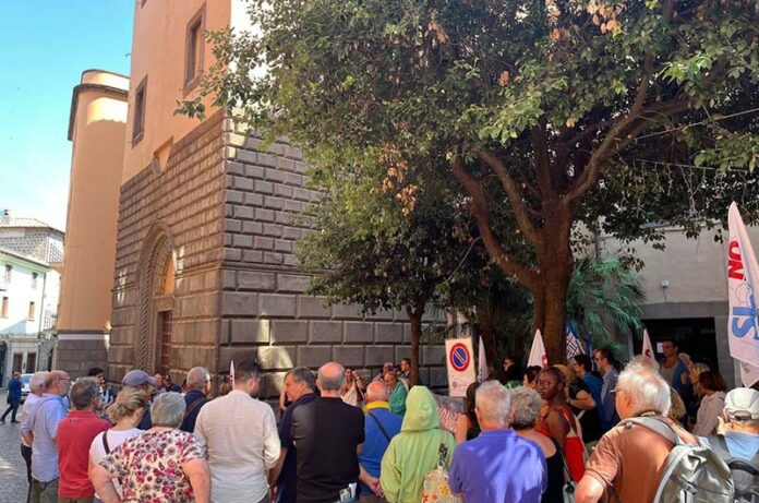 Il 16 luglio mattina  sotto il palazzo Gentili, sede della Provincia di Viterbo  il comitato Noncelabeviamo ha organizzato il sit-in di protesta per difendere il diritto a un’acqua pubblica salubre e utilizzabile, e contro la privatizzazione della società Talete.