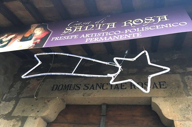 Il presepe poliscenico e permanente della casa di Santa Rosa è collocato al primo piano dell’abitazione della santa patrona in via Casa di santa Rosa a Viterbo.
