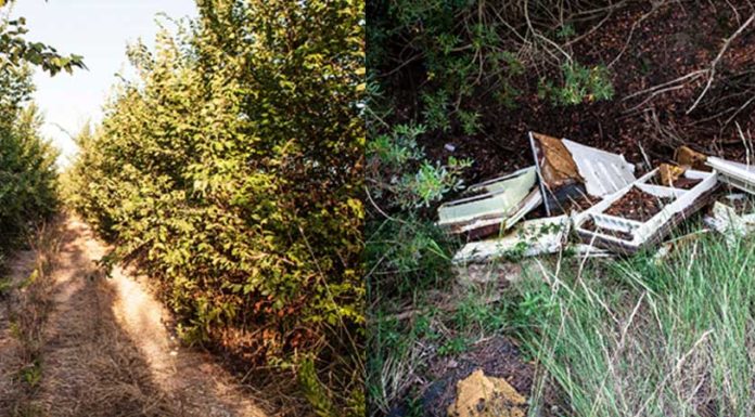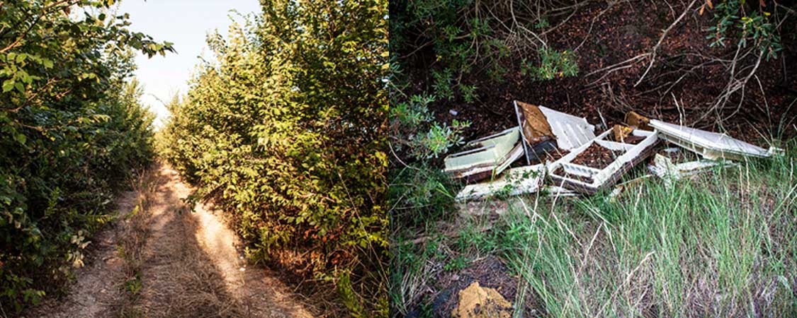 Foto del sopralluogo e delle discariche rinvenute all’interno della pineta