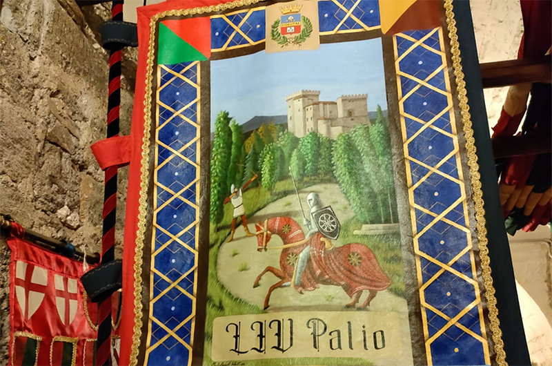 Si tratta del drappo che sarà consegnato come trofeo alla contrada vincitrice della giostra degli anelli, inserita all’interno della Sagra delle Castagne, la grande manifestazione storico-rievocativa di cui il prossimo autunno, dal 30 settembre al 16 ottobre, si terrà la cinquantacinquesima edizione. Il Palio, salvo variazioni, è previsto per il 2 ottobre. L’Ente sta già lavorando al programma, in cui si spera che tutto possa tornare alla normalità come prima della pandemia, e sta studiando interessanti novità per rendere la festa sempre più attrattiva.