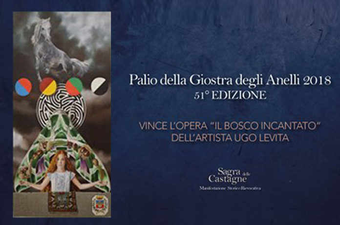 “Il bosco incantato” dell’artista umbro Ugo Levita, originario di Todi (PG), è l’opera vincitrice del concorso finalizzato alla scelta del Palio 2018 che sarà assegnato alla contrada di Soriano nel Cimino vincitrice dalla giostra medioevale della Sagra delle Castagne, in programma domenica 7 ottobre. L’opera, realizzata su supporto di tela di cotone con la tecnica della pittura ad olio, è stata selezionata da un novero di 9 partecipanti da una qualificata giuria, composta da artisti, storici, fotografi, esponenti dell’Ente Sagra delle Castagne, del Comune di Soriano nel Cimino e di realtà locali, riunitasi lo scorso 13 settembre e presieduta dall’artista Alvaro Ricci.