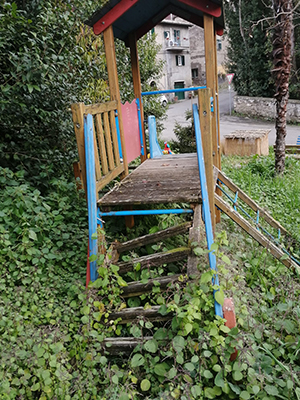Attrezzature arrugginite, erbacce e ortiche, pavimentazioni sconnesse, schegge di legno e mancanza di protezioni rendono questi spazi pericolosi e spesso inutilizzabili. Inoltre, nella quasi totalità dei parchi visitati manca la segnaletica obbligatoria con numeri di emergenza, contatti per segnalare disservizi e istruzioni per l’uso delle strutture.