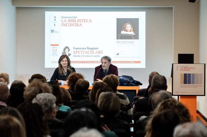 Francesca Reggiani torna in scena ma stavolta non su un palcoscenico di teatro bensì alla sala Cardarelli della Biblioteca di Viterbo. Nel suo appuntamento di venerdi 22 marzo, è arrivata per presentare il suo libro “Spettacolare” un’analisi della società contemporanea che tocca tematiche che riguardano l’amore, la vita e i sentimenti.Con sguardo intelligente e dissacratore, ma anche pieno di empatia, Francesca Reggiani ripercorre le tappe della sua vita di donna di spettacolo, fin da quando, a scuola, metteva in serio imbarazzo i suoi professori semplicemente guardandoli in silenzio. Dal laboratorio di Gigi Proietti, al suo esordio con Fellini, alle parodie della TV delle Ragazze su Rai Tre, tra cui Katia Ricciarelli, Susanna Agnelli e Sabrina Ferilli, si è sempre trattato di un genere di satira capace di cogliere gli aspetti grotteschi dell’attualità, mai superficiale e sempre attenta ai motivi profondi della comicità.  Riflessioni, su tutto e tutti! Su una realtà in continua evoluzione che ci obbliga a fare i conti con il passato, ma ancora di più con il futuro, e ad affrontare ogni cosa, ma senza paura. Perché solo così la realtà può essere “Spettacolare”.