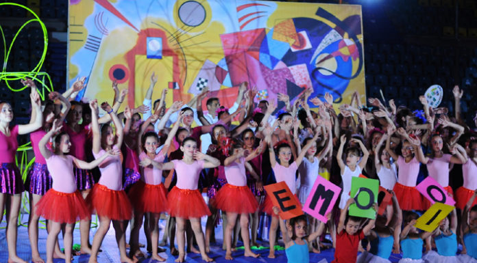 Lo spettacolo inizia… “Quando le parole non bastano allora servono le forme i colori..le emozioni..ed è cosi che sapientemente la ginnastica si unisce all ’arte creando una vera e propria magia. È il momento per guardare lo sport con una prospettiva più ampia per essere interpretato come un potente mezzo di formazione e non solo..di unione familiare e di crescita irrinunciabile per ogni individuo sin da bambino .. cosi abbiamo realizzato attraverso una coreografia inedita le PAROLE..suggestive letterine tirate fuori dai più piccoli dal libro della vita..le FORME concrete e corporee..luminose , per essere viste dal più profondo dell anima, i COLORI, scintillanti, rappresentati dalle evoluzioni aeree e acrobatiche e da un tessuto bianco che cambia via via.. l’ AMORE..semplicemente con i cuori il rosso e il rosa a simboleggiare questo supremo e complesso sentimento..poi con la partecipazione di alcune piccole atlete ed i propri papà abbiamo rappresentato le EMOZIONI .. un momento sensazionale pieno di enfasi ..un legame che va rafforzato perché sia da collegamento con il mondo esterno …