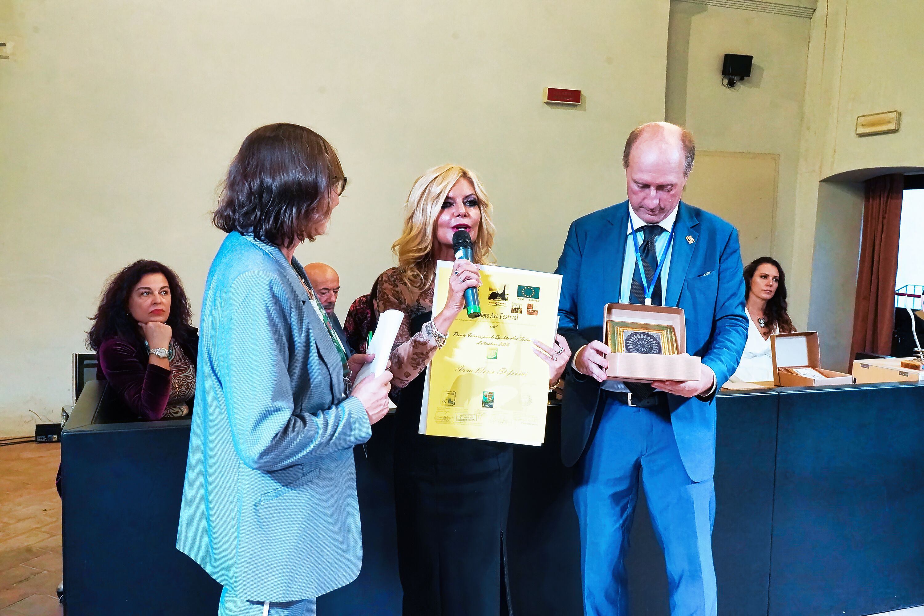 Tra gli altri sono stati premiati anche tre viterbesi: il giornalista e fotografo Giancarlo de Zanet – che recentemente ha ricevuto targhe e riconoscimenti a Roma dall’O.d.G. e Viterbo per tanti anni di attività giornalistica – premio internazionale per la fotografia; l’insegnante e giornalista Anna Maria Stefanini che ha ricevuto il premio internazionale per la letteratura 2023 dedicato al critico d’arte, operatore culturale e giornalista Carlo Roberto Sciascia per il suo ultimo libro di poesie “La Fenomenologia delle Ombre” e Valentina Evangelista che ha ricevuto il premio Letterario per il libro di narrativa per ragazzi sul Parco dei Mostri di Bomarzo. A premiare quest’ultima è stata la viterbese Elisabetta Serafini della libreria Etruria.