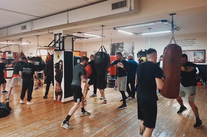 Poi si comincia, prima però un discorso ai ragazzi per far capire loro quanto è importante allenarsi, la serietà, niente stravizi, “in discoteca ogni tanto, quando non si combatte… E poi meglio stare in palestra che davanti a una Playstation”.