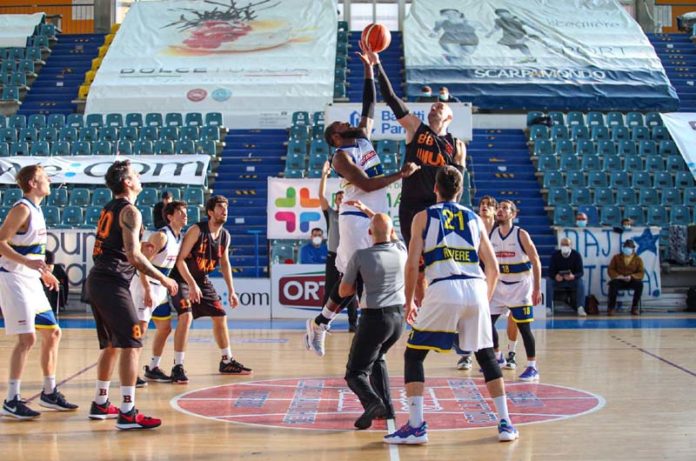 Il primo quarto si chiude 17-22 per gli ospiti con il ferro che respinge l’ultimo tiro di Rovere, ma i biancostellati sono nella partita e nel secondo quarto partono molto forte. Il pressing alto e portato su tutto il campo crea obiettivi problemi a Di Bello e compagni e prima una bella giocata di Reale, poi una penetrazione di Pebole, 5 punti di un validissimo Frisari ed infine una giocata da 4 di Rogani portano la Stella sul 31 pari. Ancora Frisari segna il + 2, ma gli ospiti non ci stanno e con due realizzazioni in fotocopia di Scuderi, due triple di Lucarelli ed una firmata Di Bello, dopo una bomba