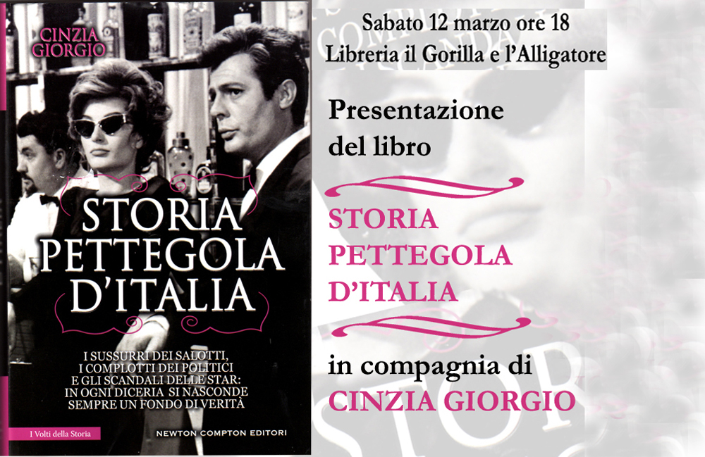 Sabato 12 marzo alle ore 18:00 la libreria il Gorilla e l’Alligatore di Orte ospita la scrittrice Cinzia Giorgio, che presenterà’ il suo ultimo libro Storia pettegola d’Italia (Newton Compton).