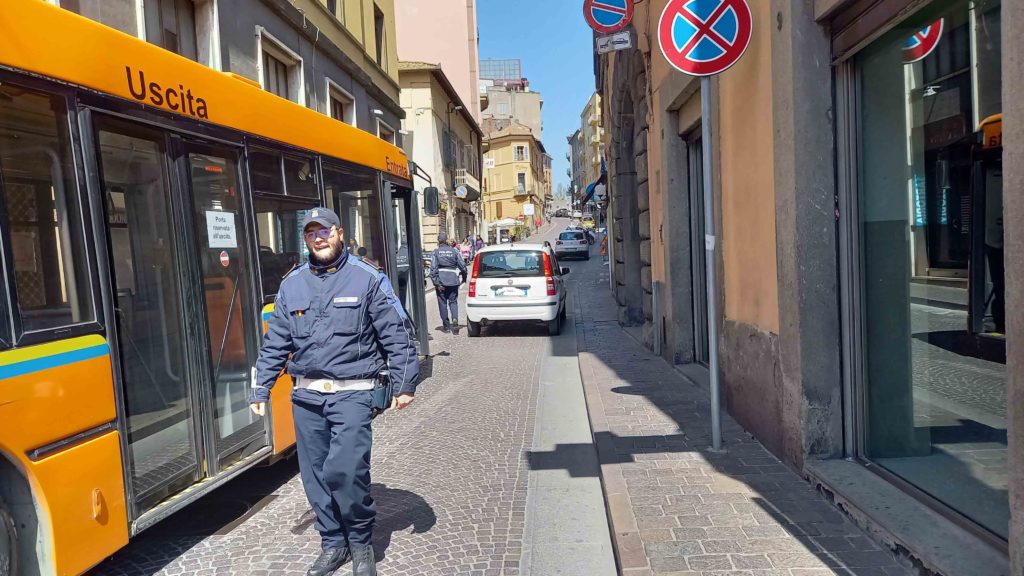 E invece lunedì 2 maggio, verso le 10.30, qualche testa d’uovo rimasta sconosciuta ha pensato bene di fermare la propria Fiat Panda proprio all’imbocco di via Matteotti, dove la strada è piuttosto stretta. Così, quando è arrivato il bus della Francigena, s’è dovuto giocoforza fermare, intasando la circolazione. Nel giro di pochi minuti s’è formata una bella coda in piazza del Teatro e, nonostante i ripetuti strombazzamenti, il proprietario (o proprietaria) della famigerata auto non s’è fatto vedere.