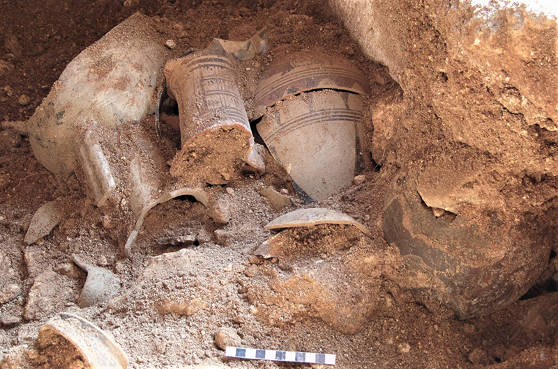 Ciò nonostante, gli archeologi della società EOS ARC, incaricati dei lavori, sono stati fortunati: uno dei complessi sepolcrali, infatti (proprio quello più vicino alla strada, da cui erano iniziate le indagini), era stato sì ‘visitato’, ma in epoca antica, da profanatori interessati a saccheggiare i metalli pregiati più che le ceramiche e gli altri oggetti di corredo. Questa circostanza ha fatto sì che sia stato possibile recuperare decine di vasi e altri oggetti e raccogliere informazioni sul contesto originale.