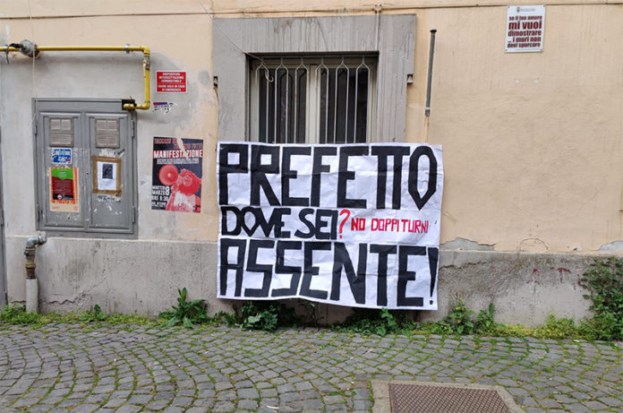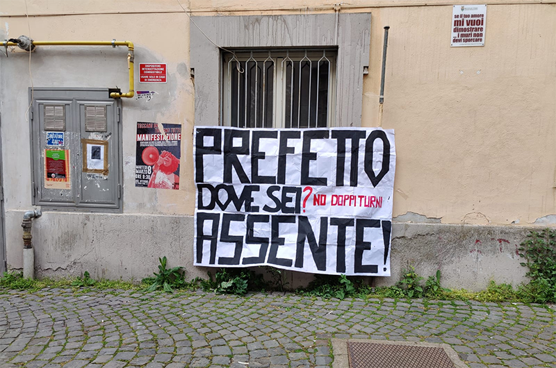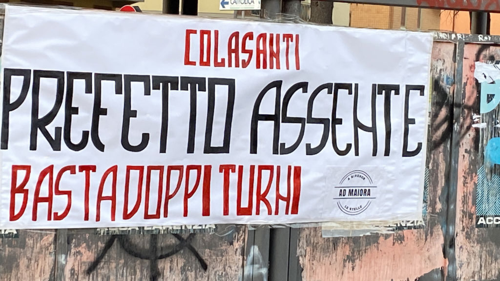 Striscione degli studenti contro il Prefetto