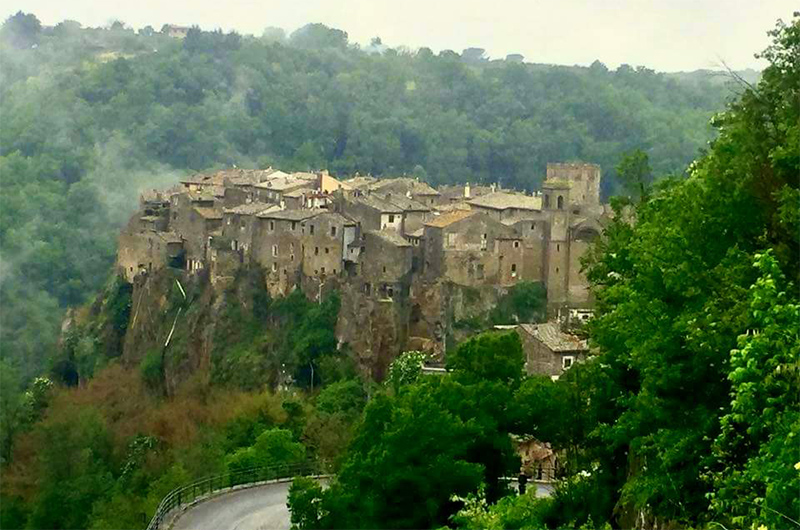 Partenza da Calcata che sorge su uno sperone proteso nel vuoto. Le sue origini si perdono nella notte dei tempi. Sicuramente abitata nell’era preistorica, la zona divenne in epoca pre-romana importante avamposto della civiltà falisca. Il nome di Calcata, tuttavia, compare per la prima volta molto più tardi, in un documento del 772-795, sotto il pontificato di Adriano I. Più tardi, nel Duecento, Calcata entrò nell’orbita della nobile famiglia degli Anguillara che vi eressero un castello e la cinta muraria ma, data la posizione impervia e nascosta, rimase sempre ai margini delle vicende storiche.