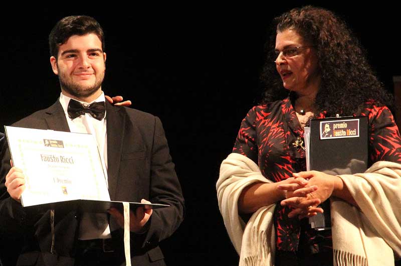Straordinaria la sua enorme capacità vocale, un dono di famiglia coltivato grazie alla passione per l’Opera di mamma, soprano e pianista, e papà, tenore e violinista. Un ragazzo che, nonostante la giovanissima età, ha dedicato tutto il tempo allo studio, unendo quello scolastico per cui si è appena diplomato, a quello della lirica, seguendo da sempre corsi privati. Il premio Fausto Ricci è la sua prima esperienza in un concorso. Seconda classificata il soprano Chiara Margarito e terzi, ex-aequo, il baritono Luca Galli e il mezzo-soprano Eleonora Filipponi. A Floriana Cicio, soprano, il premio-borsa di studio Germogli d’arte, dedicato ai giovani talenti.