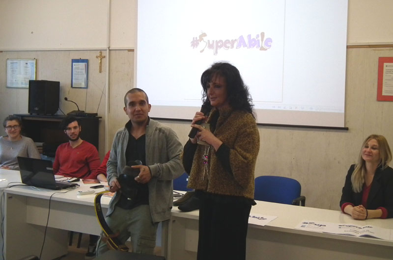 Poi è stata la volta di Marta Spigaglia, 17enne, liceale proprio del Leonardo Da Vinci che – in partership con SuperAbile – non solo ha presentato il suo libro “Il Rumore del Silenzio” (che tra l’altro sta andando a ruba), dedicato al fratello Luigi, disabile, ma ha raccontato il suo costante e quotidiano impegno presso l’associazione “Il Volo” – della presidente Roberta Bartoccini e di Roberta Visciola – centro diurno di San Lorenzo Nuovo che accoglie 35 ragazzi con varie difficoltà.