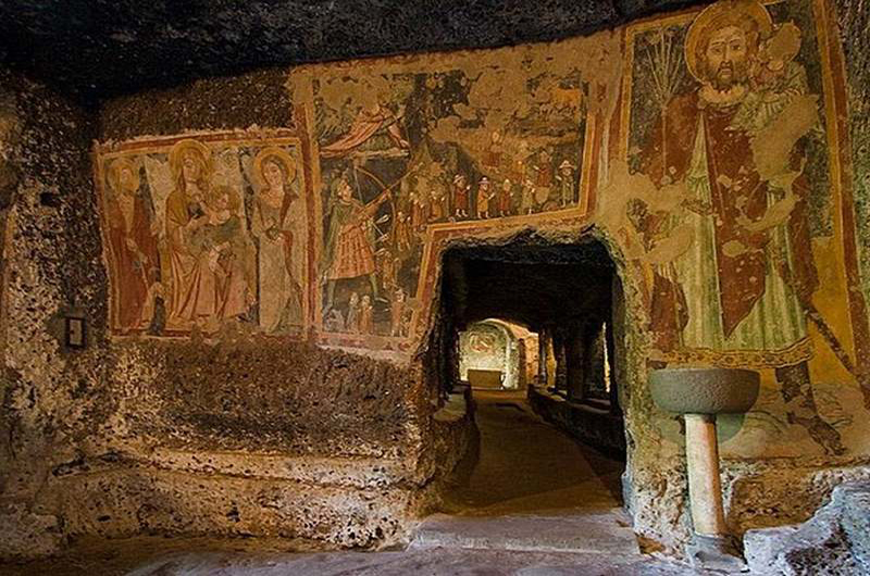 Nel tour classico di Sutri che proponiamo, se ne visita la parte più antica, ripercorrendo a valle l’importante via romana Cassia. La stessa arteria fu denominata Francigena nel Medioevo per essere stato asse viario dei pellegrini alla volta di Roma e della Terra Santa. Questi ultimi vedevano in Sutri un’importante meta prima di giungere alla città e tomba di Pietro, anche per via di un’importante chiesa rupestre dedicata alla Madonna del Parto, sede di un precedente luogo di culto dedicato al dio Mitra.