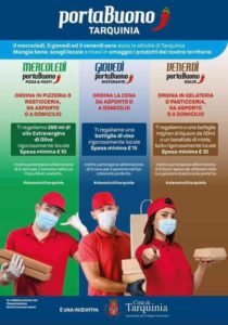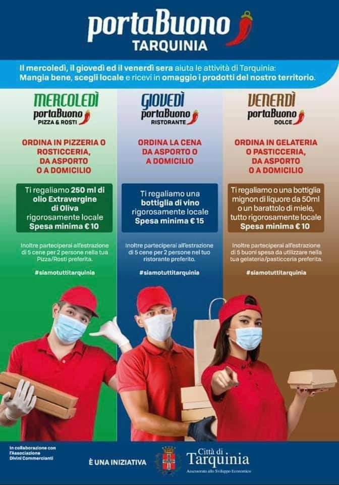 PORTABUONO già nel nome esprime il desiderio di portare nelle case la genuinità dei prodotti locali, la qualità dei piatti, della pizza e dei dolci di Tarquinia e soprattutto un supporto alle categorie commerciali tra le più colpite dalla pandemia.