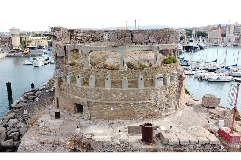 - Poi a Civitavecchia l’intervento di consolidamento, restauro e valorizzazione del Porto Romano (nella foto), con il restauro e il consolidamento del manufatto dell’antica Torre Faro del porto antico per la sua tutela e per la successiva realizzazione di un centro multimediale per la promozione e diffusione della storia del porto.
