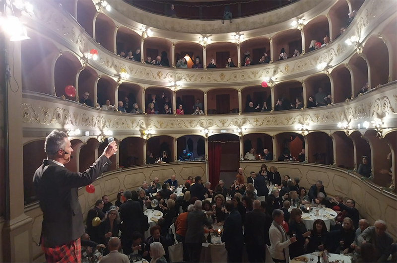 Straordinario successo per il tradizionale evento dell’ultimo dell’anno al Teatro Boni di Acquapendente, riempito da un pubblico entusiasta che ha partecipato a una serata elegante e divertente all’insegna del buon gusto e dello spettacolo di qualità. Alla cena con piatti di eccellenza del territorio ha fatto seguito l’esplosivo e irresistibile show della coppia comica Lucchettino in “Lucchettino Classic“. A mezzanotte tutti i presenti hanno brindato al nuovo anno, concludendo in bellezza un format unico nei teatri dell’Alto Lazio.
