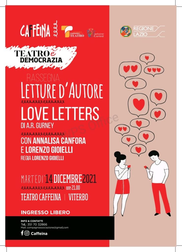 Appuntamento al Teatro Caffeina di Viterbo, domani alle 21.00 con lo spettacolo teatrale “Love letters” (ingresso libero).