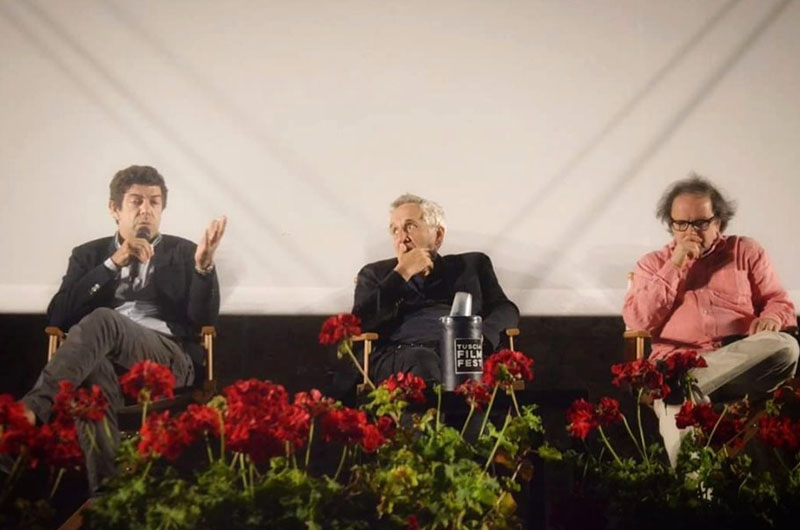 Una serata speciale quella di venerdì 5 luglio al Tuscia Film Fest, rassegna cinematografica in pieno svolgimento a Viterbo. Piazza San Lorenzo sold out per accogliere Marco Bellocchio, maestro indiscusso del cinema internazionale, e Pierfrancesco Favino, attore amatissimo dal pubblico italiano, e per assistere alla proiezione del film “Il traditore”, pellicola incentrata sulla controversa figura di Tommaso Buscetta. Grazie alla collaborazione di questo ambiguo e contraddittorio personaggio, il team antimafia capitanato dal giudice Giovanni Falcone riuscì ad assicurare alla giustizia ben 366 appartenenti alle cosche mafiose. Il film è una rappresentazione a più voci nella quale appaiono personaggi noti alle nostre cronache recenti; un grandioso affresco sul mondo mafioso, nel quale i codici morali sono sovvertiti, culminante nelle scene del maxiprocesso di Palermo, che terminò nel 1992 con condanne epocali. “Il traditore” è un film sul senso di appartenenza ad una famiglia, che sia quella degli affetti che quella mafiosa; rifugge dal glamour degli stereotipi preferendo lo scavo psicologico. A introdurre la visione del film il giornalista e critico cinematografico Enrico Magrelli, che prima ha chiamato sul palco i due protagonisti della serata, per procedere alla consegna del premio “Tuscia Terra di Cinema” intitolato all’avvocato Luigi Manganiello. A consegnare il premio a Marco Bellocchio i figli Antonio e Paolo Manganiello e Marco Santoni, consigliere di Banca Lazio Nord, della quale Manganiello è stato presidente. Subito dopo la visione del film, che ha tenuto incollati alle sedie i numerosissimi spettatori, un’intervista a tre voci intervallata dalle domande del pubblico. «Per un autore è sempre bello vedere una platea così numerosa», ha esordito Marco Bellocchio, tra gli applausi scroscianti del pubblico. E poi, a proposito della sua scelta di rappresentare la vita di Tommaso Buscetta: «Prima di realizzare questo film sapevo poco di lui. Quello che era stato pubblicato dai giornali. Un personaggio molto intelligente, carismatico, anche simpatico. Voleva essere un protagonista, ma non avrebbe mai voluto diventare un collaboratore di giustizia. Lui credeva ad una mafia antica, in cui certi valori venivano rispettati, e in questo si contrappose ai feroci Corleonesi. Ma non si deve pensare a Buscetta come un eroe. È stato un personaggio complesso, ma l’eroismo è un’altra cosa». E Pierfrancesco Favino ha aggiunto: «Sono orgoglioso di aver fatto parte di questo film e di essere stato nelle mani di un artista. E sono contento di vedere tra di voi tanti ragazzi, perché il film narra una pagina della nostra storia che non è così nota. Vale la pena di conoscere di più, per capire quali possono essere state le ragioni di eventi tragici che ci riguardano tutti. Buscetta era un uomo scaltro. Nel film emergono aspetti che lo riguardano: gli affetti familiari, che appartengono a tutti, ma anche un’idea di assoluta lealtà a un mondo a cui Buscetta sceglie consapevolmente di appartenere, non provenendo da una famiglia mafiosa. Non ho mai creduto alla sua redenzione. E sono convinto che almeno il sessanta per cento di quello che sapeva se ne è andato con lui. Il film mi ha permesso di avvicinarmi in maniera diretta e disturbante a tutto ciò che noi della nostra storia ignoriamo e che ancora oggi è meglio che sia così. I mafiosi sono soldati che vivono in guerra costantemente. Hanno regole differenti, vocabolari particolari: ciò che si stanno dicendo non è come sembra. Comunicano per accenni, allusioni. Quello messo in scena da Bellocchio è un teatro greco, ampliato ad una civis molto più ampia e profonda di quella palermitana».